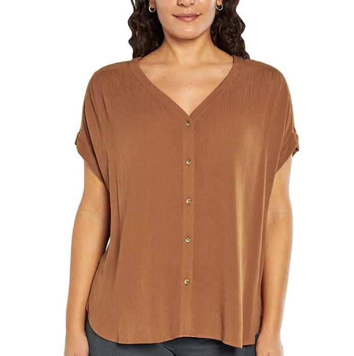 & Free ShippingBluză maro simplă cu nasturi și croială lejeră. Ideală pentru ținutele casual de zi cu zi.